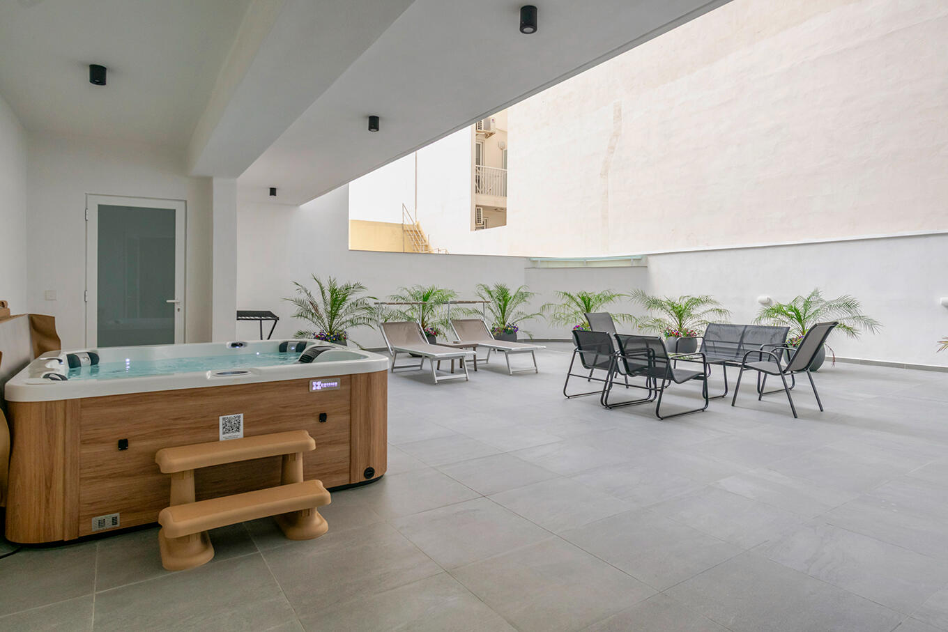 "I had a very pleasant stay here. The location is excellent, close to everything you need. The hosts were friendly and service-minded, always ready to help. The rooftop is a real highlight, with jacuzzis and a nice atmosphere – perfect for relaxing after a day out. Highly recommended."